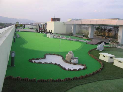 在決定校園屋頂綠化鋪裝的第一步要確定鋪裝的綠化草坪為天然草坪還是人造草坪,人造草坪用作校園屋頂綠化相對比較簡單,首先要確定校園屋頂?shù)臉敲媸欠裾麧?,要做好防水,樓面要平整不能有縫隙,不能起沙掉皮等,這樣的基礎上基本都可以做到,那么就可以直接鋪裝人造草坪。