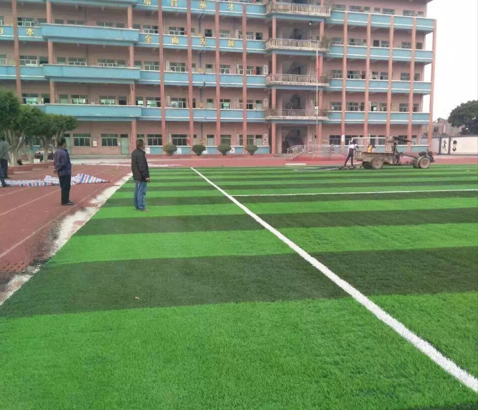 廣東省東莞市企石鎮(zhèn)新域?qū)W校選用的綠達產(chǎn)品,而綠達人造草所具備的優(yōu)點就是其仿真度高,看上去比較飽滿,直立性較好,場地鋪裝完成后與天然草坪相差不大,基本可以和天然草相媲美。